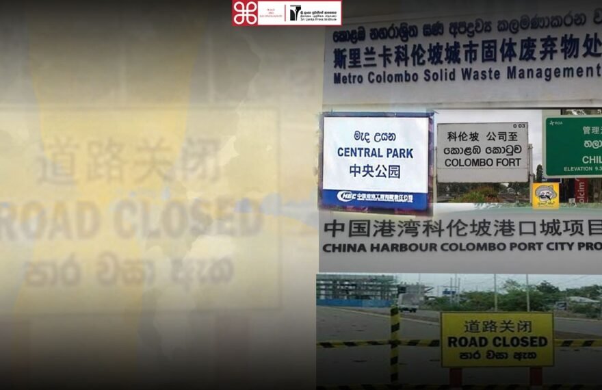 சி.ஜே.அமரதுங்க சீனாவால் நிதியளிக்கப்பட்ட சில திட்டங்களின் பெயர் பலகைகளில் தமிழ் மொழி சீன மொழியின் மூலமாக மாற்றீடு செய்யப்படுகின்ற பல சம்பவங்கள் சமீபத்தில் அறிக்கையிடப்பட்டன. அத்தகைய ஒரு சம்பவம் கொழும்பு துறைமுக நகர திட்டத்திலும் அறிக்கையிடப்பட்டது. அதன் மத்திய பூந்தோட்டப் பகுதியில் உள்ள பெயர் பலகை ஆங்கிலம், சிங்களம் மற்றும் சீன மொழிகளில் காணப்பட்டது. பிரதானமாக தமிழ்